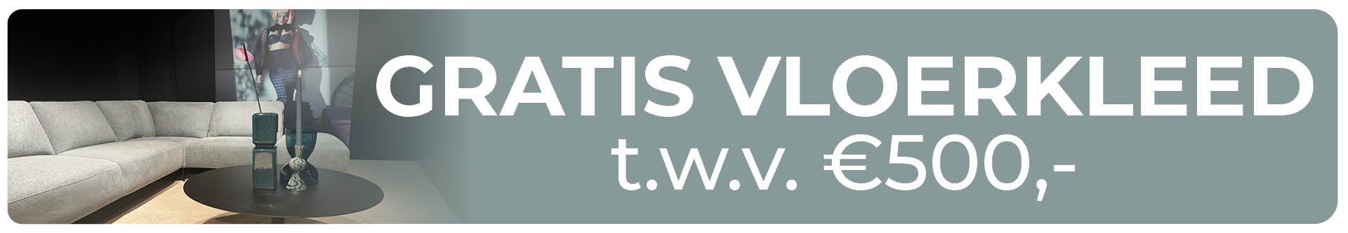 - Bij een minimale besteding van €2.500 ontvang je een waardebon van €500 voor een vloerkleed.