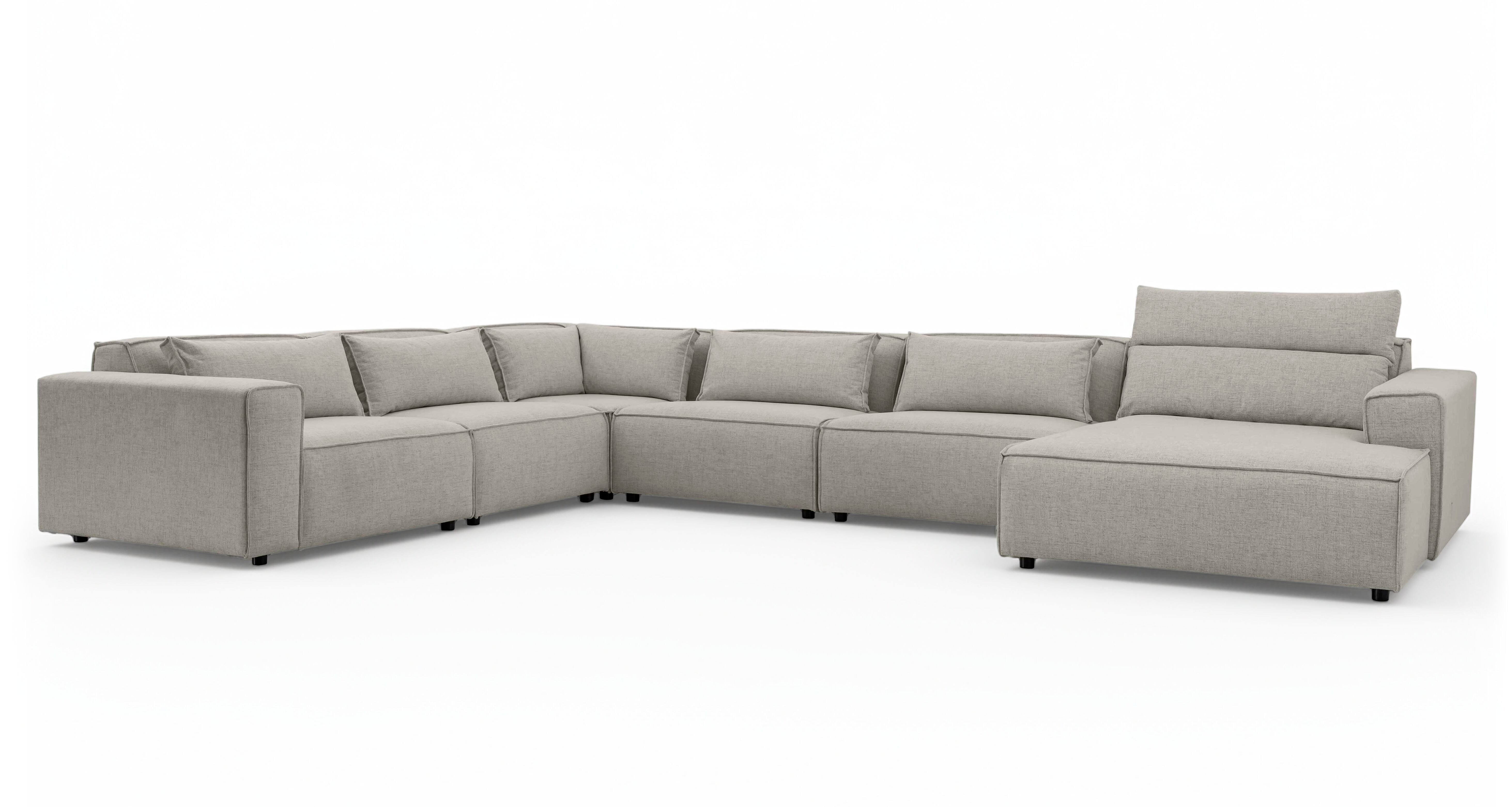 De Rockdale hoekbank van Baenks combineert moderne elegantie met een ontspannen uitstraling en is ontworpen voor wie comfort en design op hoog niveau waardeert. De zachte lijnen en decoratieve vlindernaad geven de bank een verfijnde, ambachtelijke uitstraling, terwijl de hoogwaardige nosagvering en het veerkrachtige HR-koudschuim in de zitting zorgen voor blijvend zitcomfort. Ook in de rug is gebruikgemaakt van nosagvering in combinatie met polyetherschuim, wat resulteert in een aangename ondersteuning. De bank is voorzien van dubbele rugkussens, wat zorgt voor extra zachtheid en optimale ondersteuning. De lendenkussens en het dubbele rugkussen met rol op de longchair nodigen uit tot ontspannen loungen, terwijl de bekleding in de luxe stof Soda in de kleur Ash Grey rust en verfijning toevoegt aan het interieur. De zwarte kunststof poten benadrukken het lage, loungeachtige karakter van het ontwerp en maken de Rockdale tot een stijlvolle blikvanger die elegantie en comfort moeiteloos samenbrengt.