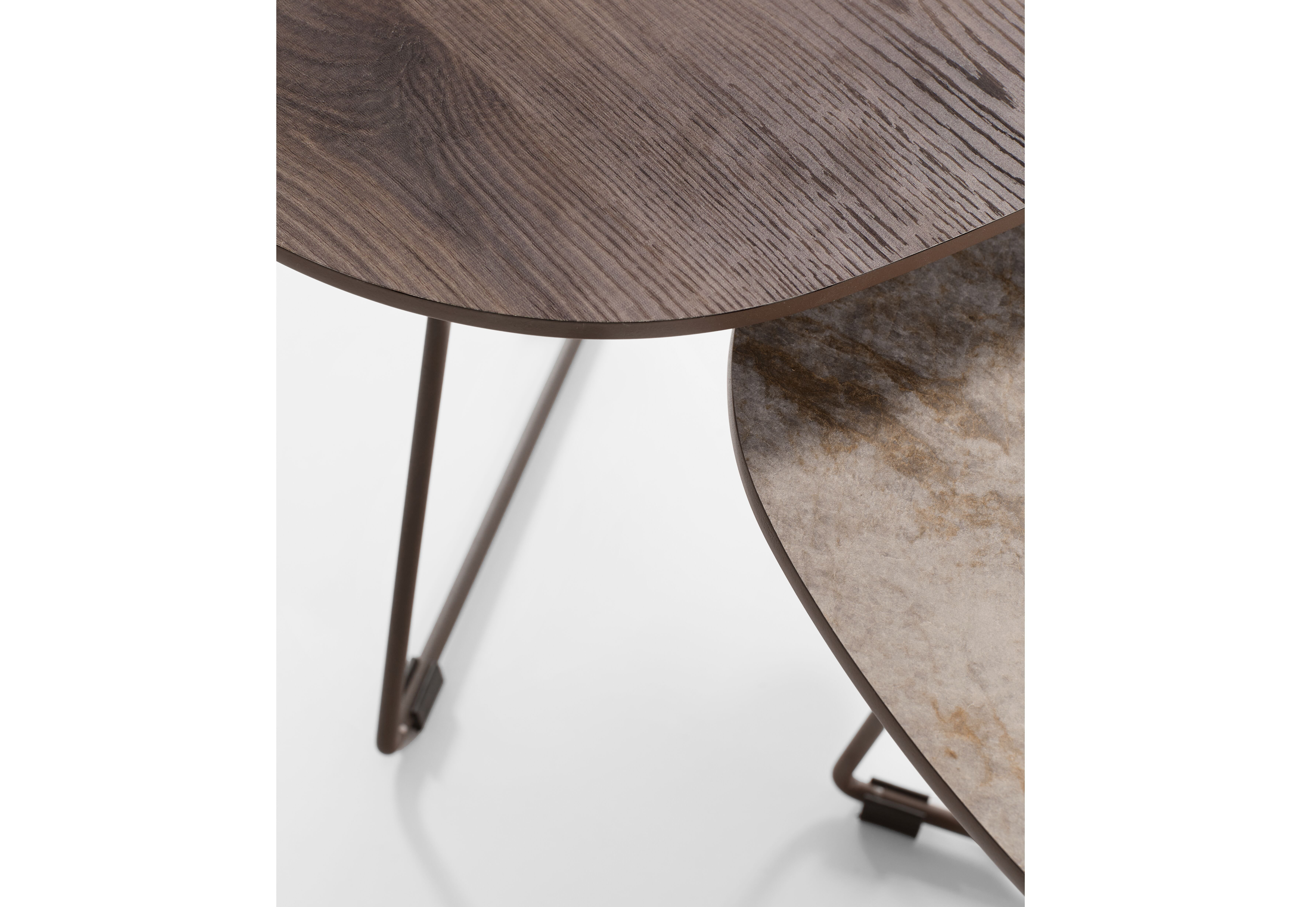 Deze salontafelset is met veel aandacht voor detail ontworpen. Het duurzame HPL-blad ligt op een slank metalen frame en is verkrijgbaar in diverse stijlvolle kleuren. De toplaag heeft een subtiele structuur en is gemaakt van HPL (High Pressure Laminate): een sterk en duurzaam materiaal dat goed bestand is tegen krassen, vocht, warmte en licht.